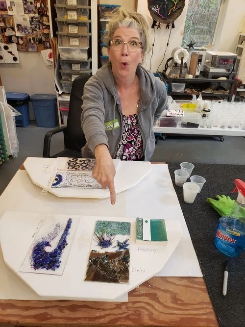 Susan has over 20 years' experience as a fused glass artist and instructor. She offers people a chance to explore their creativity using a 6000 year old art form. Susan set aside her childhood passion for art while pursuing a post-secondary teaching career. Decades later her creative soul longed to burn more brightly. After experiencing abject terror and championing the inner voice, "What if I'm not artistic?", Susan began years of instruction by talented glass art teachers, honing her skills, testing her limits by practicing for years while entering challenging juried art shows.